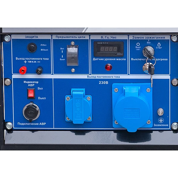 Интеллектуальный модуль с многофункциональным дисплеем предлагает эффективный способ контроля параметров работы (на дисплее отображаются часы работы(моточасы) дизельного генератора, напряжение, частота тока)