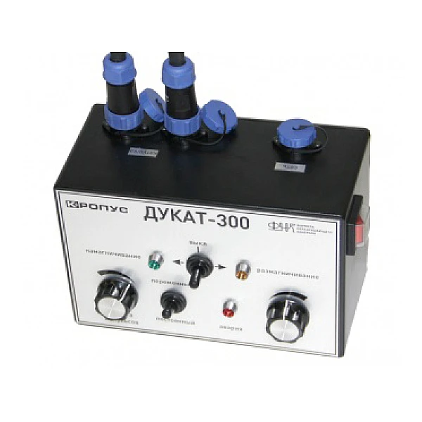 Магнитопорошковый дефектоскоп Дукат-300 предназначен для намагничивания различных изделий в процессе магнитопорошкового контроля и для их последующего размагничивания. Максимальный диаметр изделий - до 300мм.