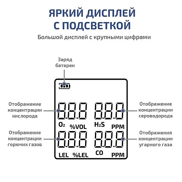 Газоанализатор МЕГЕОН 08190 – индивидуальный многоканальный прибор непрерывного действия, который используется для одновременного мониторинга концентрации кислорода и выявления присутствия сероводорода, угарного и горючих газообразных веществ в окружающем воздушном пространстве. Принцип работы устройства основан на замере параметров электрического тока, вырабатываемого электрохимической матрицей в результате химической реакции с участием молекул анализируемого компонента. Электронный микропроцессор управляет внутренними операциями и преобразует цифровые сигналы в данные для вывода на дисплей.