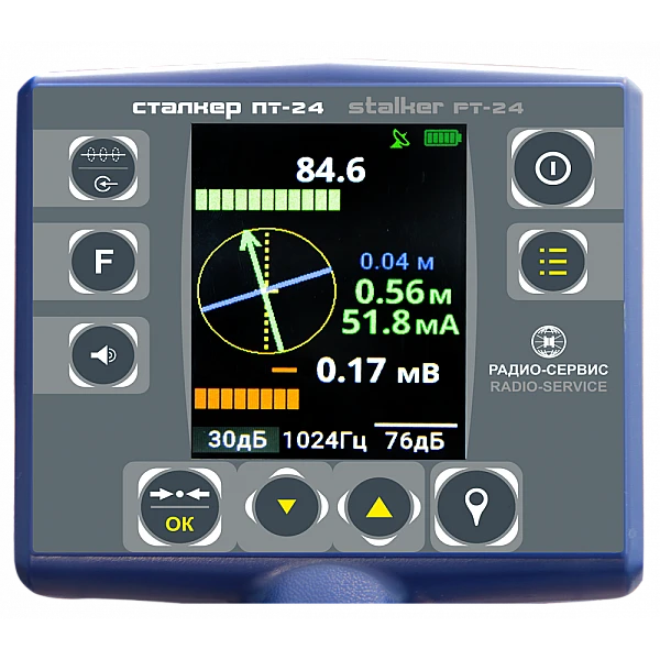 В комплект поставки трассоискателя «Сталкер 15-24» входит генератор ГТ-15 (LFP) и приемник ПТ-24 со встроенным GPS/ГЛОНАСС модулем