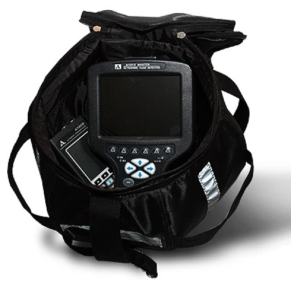 - сумка укомплектована выносной ручкой (петля на руку) и стальным тросом со съемными карабинами. Трос служит для переброса сумки лежневка-траншея или через трубу между двумя дефектоскопистами, подъема оборудования наверх при высотных работах.