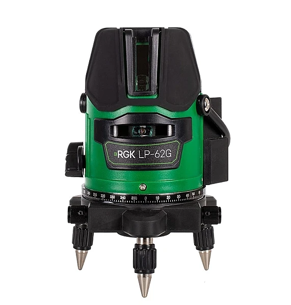 RGK LP-62G — простой в управлении, недорогой лазерный уровень, обладающий всеми необходимыми и дополнительными функциями. Проецируемый данной моделью зеленый луч виден значительно лучше красного луча аналогичных моделей, как в помещении так и на улице. С помощью этого устройства вы сможете решать самые разнообразные задачи – от разметки фундамента частного дома до заливки пола и укладки плитки. Является выгодным приобретением для любой строительной или ремонтной бригады.