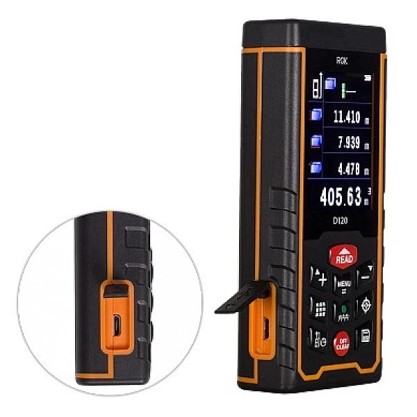 Данный прибор подойдёт для работы не только внутри помещений, но и на улице. Это обеспечивается благодаря наличию в прибое цифрового визира. Теперь пользователю прибора достаточно навестись цифровым указателем на экране на нужную цель и нажать кнопку, и RGK D120 произведёт измерения именно до той точки, на которую пользователь навёлся целеуказателем (цифровым визиром) прибора.
