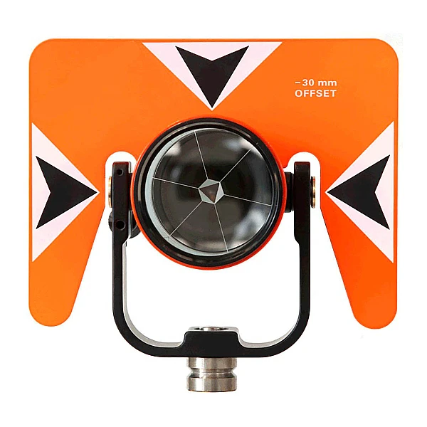 Стеклянная призма в пластиковом корпусе диаметром 64 мм, может быть установлена на константу призмы -30 мм или 0. Для установки на веху предусмотрена резьба 5/8 дюйма.