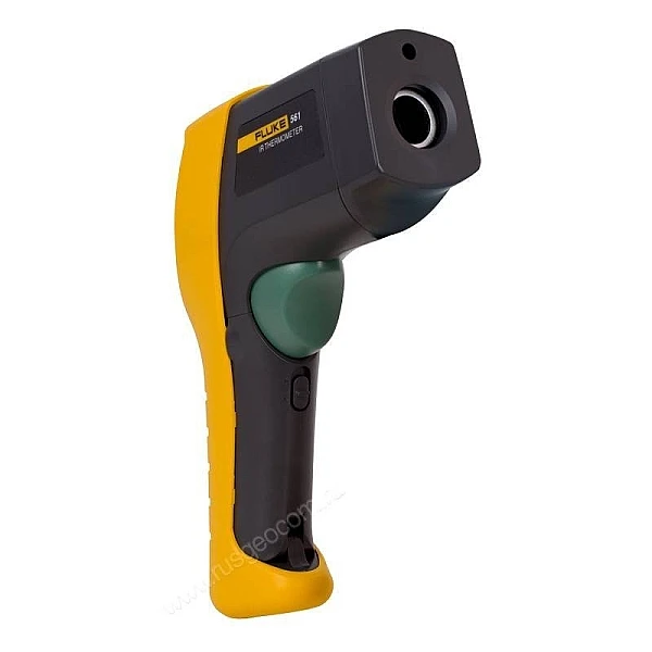 Диапазон измеряемых термометром Fluke 561 температур лежит в пределах от -40°C до +550°C, При этом погрешность измерений составляет 1,0°C при отрицательной температуре, и 1% при температуре выше 0°C. 2 батарейки типа "АА" обеспечивают до 12 часов непрерывных измерений при включенном лазере и подсветке дисплея.
