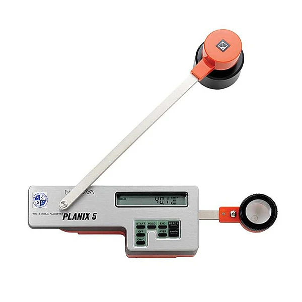Планиметр полярного типа PLANIX 5 имеет полюсное плечо, с помощью которого осуществляется движение в пределах измеряемой площади, вычисляет площади в квадратных сантиметрах или квадратных дюймах. Измеренные значения отображаются на 8-символьном дисплее.
