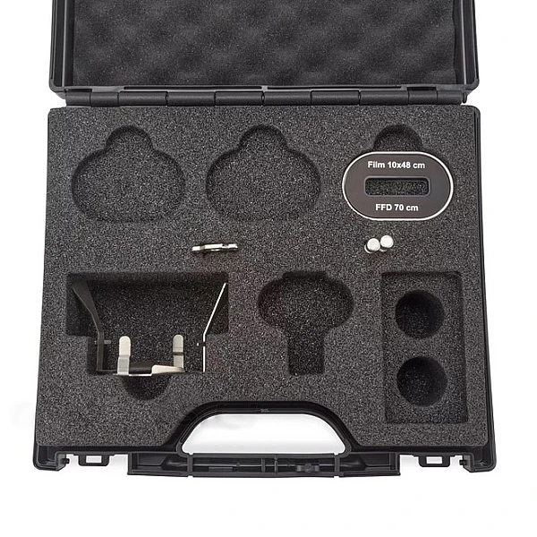 Блок управления CONTROL EVO оснащен встроенным калькулятором времени экспозиции. Пользователь задает параметры съемки: просвечиваемый материал, тип рентгеновской пленки, фокусное расстояние, плотность снимка, радиационную толщину и напряжение. На их основе калькулятор рассчитывает максимально допустимую силу тока и время экспозиции. В память блока управления можно записать до 100 пользовательских программ экспозиций.