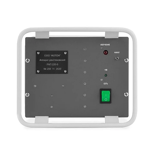 РАП 220-5 питается от однофазной сети переменного тока 220 В. Блок питания обеспечивает регулирование и стабилизацию режимов работы рентгеновской трубки, а также ее защиту от перегрузки. К блоку питания также могут подключаться сигнальная лампа-вспышка и дверные блокировочные контакты, которые служат для штатной блокировки аппарата при открытых дверях камеры или рентгенозащитного бокса.