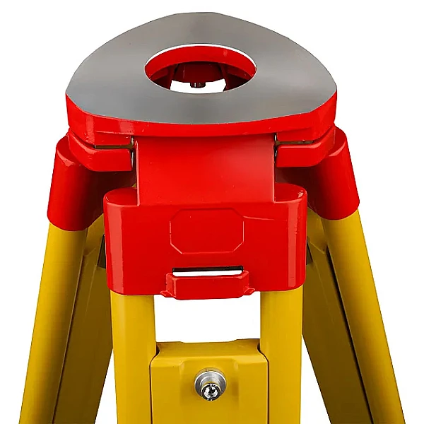 Для установки геодезических приборов деревянный штатив снабжен металлической головкой из немагнитного материала, с верхней фрезерованной поверхностью увеличенного размера и становым винтом с резьбой 5/8". Несущие конструкционные элементы раздвижных ножек выполнены из цельной древесины и защищены от негативного воздействия влаги лакокрасочным покрытием желтого цвета. Их фиксация в рабочем положении производится надежными винтовыми зажимами. Металлические наконечники ножек выполнены с упорами для вдавливания в грунт, которые для улучшения сцепления с обувью снабжены рифлением.