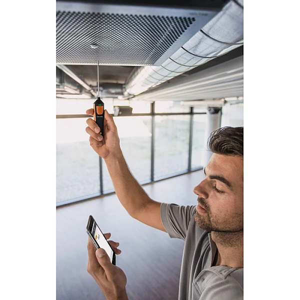 Смарт-зонд термометр Testo 905i - компактное мобильное решение для замеров температуры от -50 °C до +150 °C с низким уровнем погрешности ±1 °C. Прибор используется для пусконаладки, диагностики и обслуживания систем вентиляции и кондиционирования.