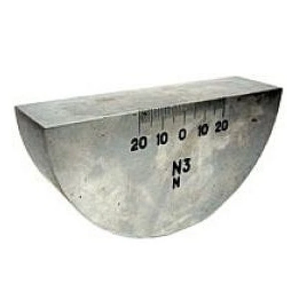 Стандартный образец СО-3 применяют для определения точки выхода ультразвукового луча и стрелы преобразователя ультразвукового дефектоскопа. Может применяться для определения времени распространения ультразвуковых колебаний в призме преобразователя.